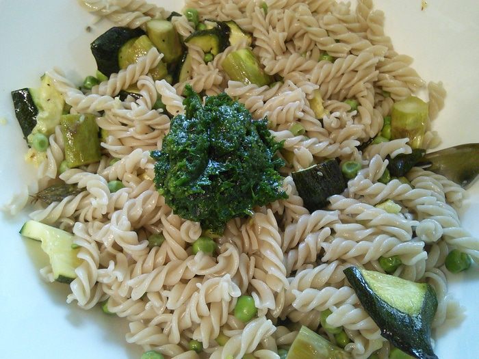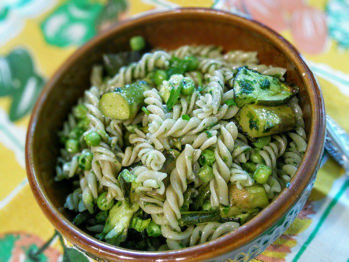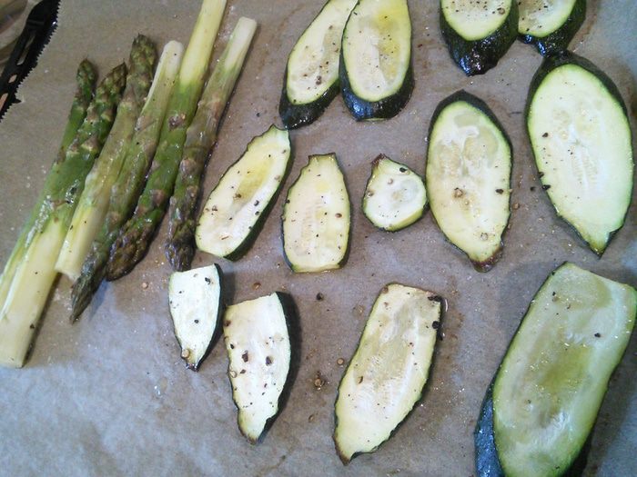 Макаронные изделия (у меня из цельнозерновой). Их нужно отварить. Овощи запечь в духовке при температуре 200°С около 20 мин, предварительно посолить и поперчить, сбрызнуть оливковым маслом.