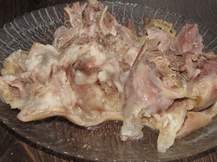 Готовую рульку вынуть, остудить. Сбоку сделать разрез и аккуратно вынуть кость.