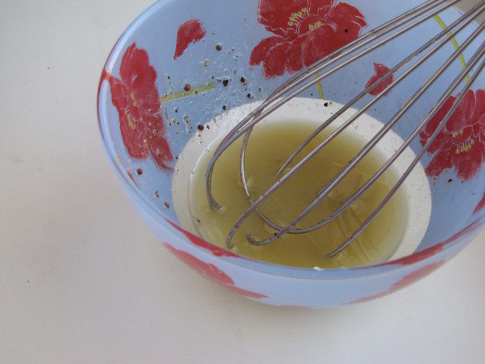 Для заправки смешать все ингредиенты и взбить венчиком.