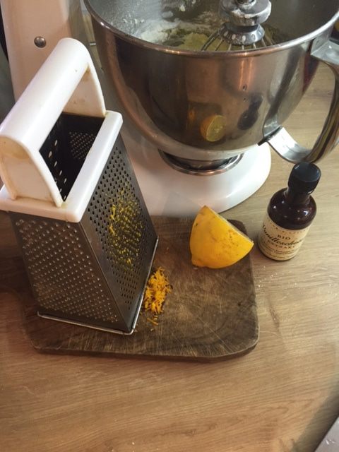 Цедру лимона и ванильный экстракт вмешиваем в тесто. Хорошо взбиваем тесто.
