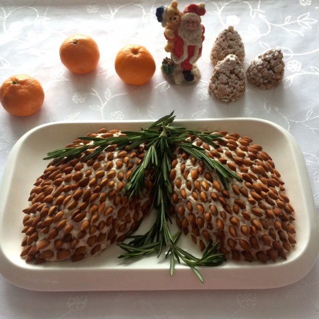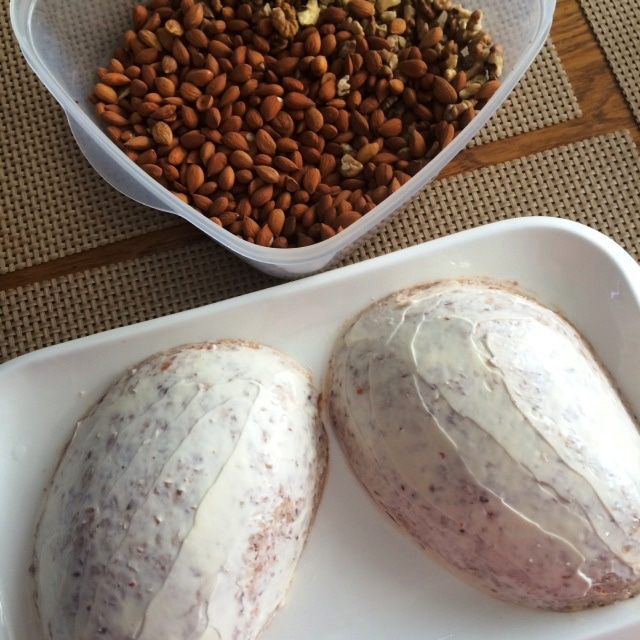 Добавляем горсть измельченного миндаля, размешиваем.
