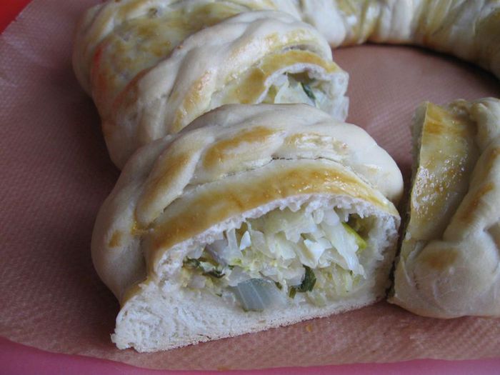 Пироги с капустой — частые гости в моем доме, исполняю их по заявкам родных. Ароматные, вкусные, это само собой... Хочется вместе с тем как-то их разнообразить внешне, этот пирожок хотелось показать вам: он интересен, как мне кажется, формовкой. В русской кухне пироги традиционно едят горячими. Очень хорошо на обед, с бульоном.