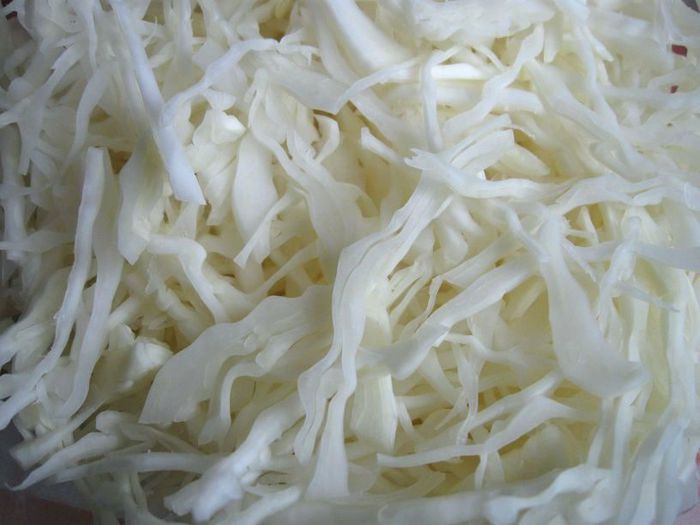 Порезать капусту, поместить в кипяток на 10-15 секунд, откинуть на сито, оставить на нем до остывания. Сварить яйца вкрутую.