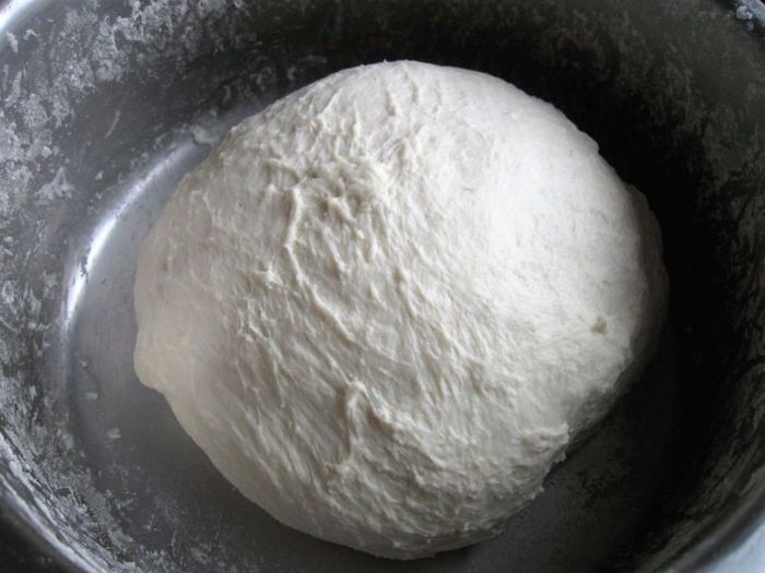 Вынуть тесто из кастрюли, положить на поверхность, на которой будете работать.