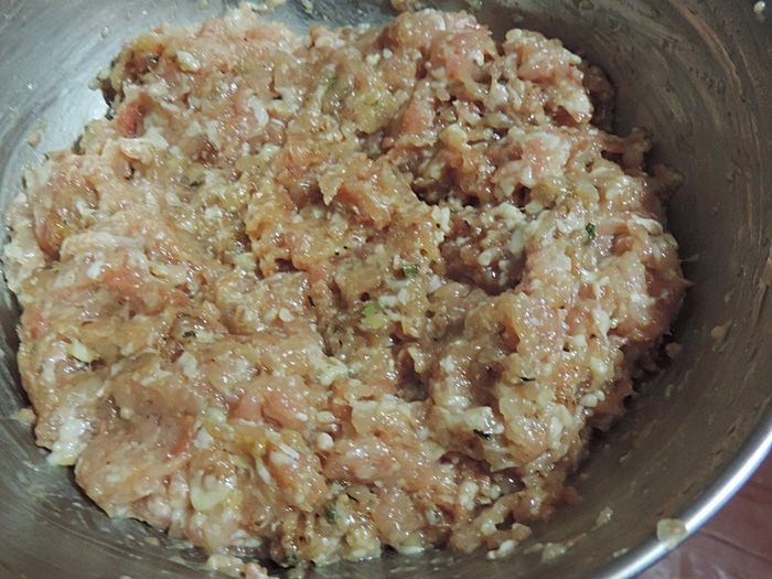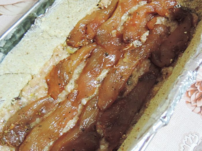 Повторяем: вторая треть фарша, курочка, оставшийся фарш.