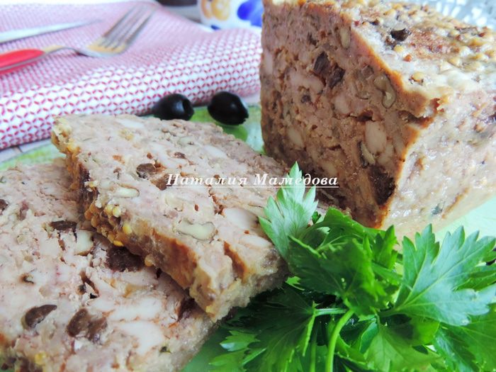 Затем открываем фольгу, смазываем хлебец смесью сливок и горчицы, убавляем температуру до 180°C и запекаем террин еще 20 минут. Следите, чтобы он не подгорел.