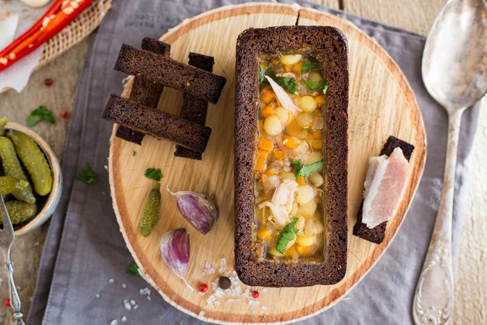 Наваристый гороховый суп с уткой в хлебном горшочке