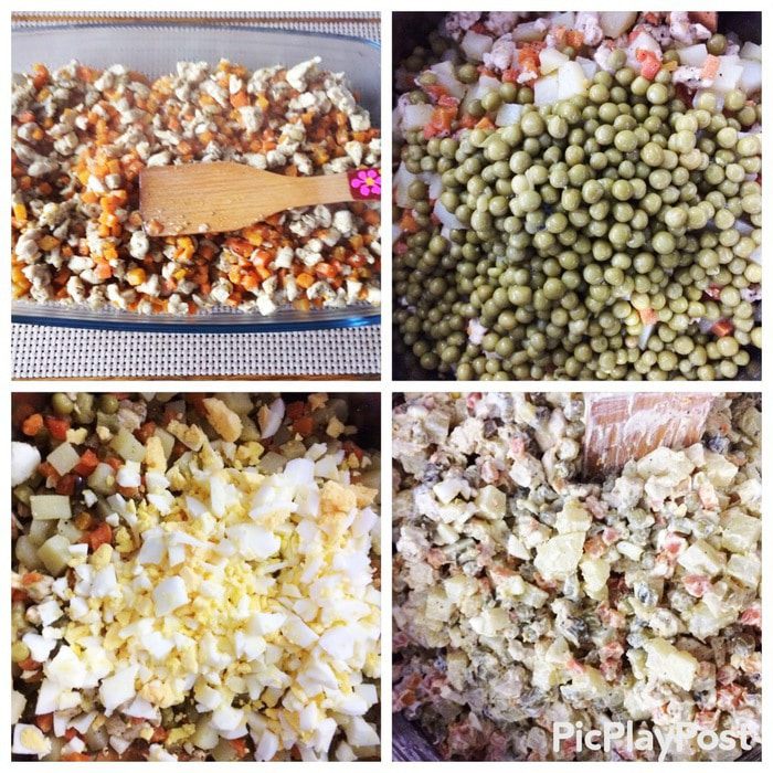 У меня из этого количества ингредиентов получилось два салатника для праздничного стола.