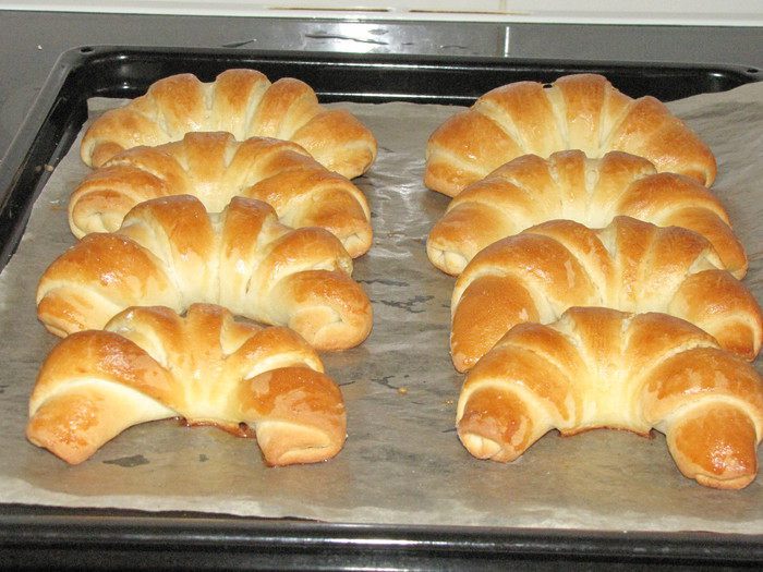 Рецепт расчитан на 16 рогаликов.