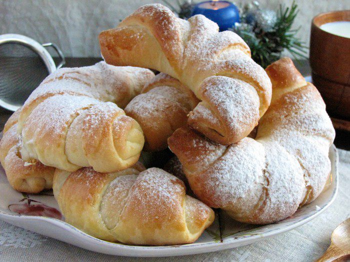 Рогалики остудить и присыпать сахарной пудрой. Звать всех на чай! Приятного аппетита!