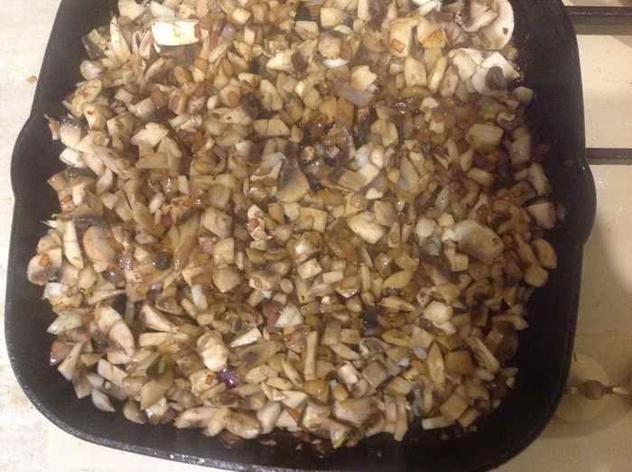 Добавить грибы и обжаривать еще 3 мин. Вылить пиво и выпарить его наполовину, добавить муку и хорошо перемешать.