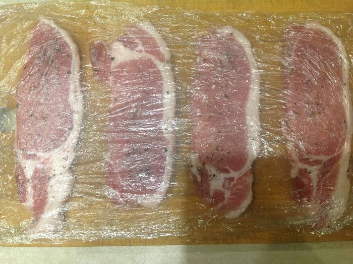 Мясо нарезать, посолить, поперчить и отбить. Смазать с обеих сторон растительным маслом и дать постоять минут 10.