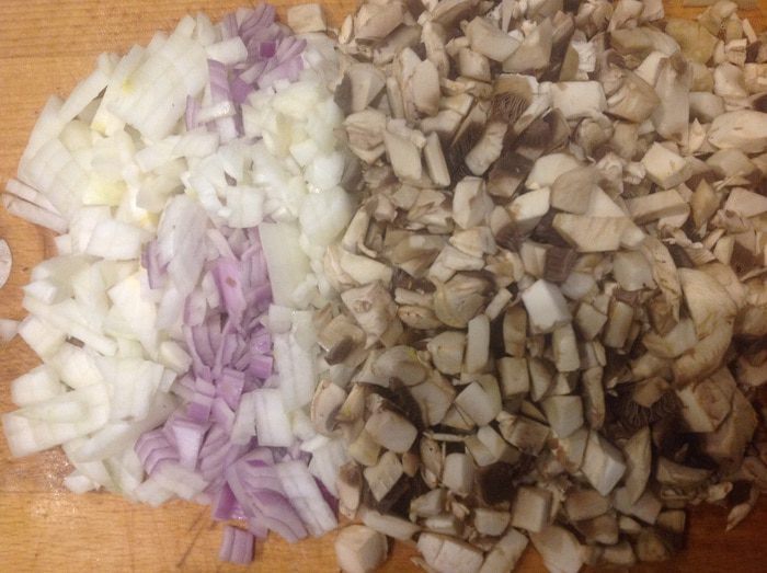Лук, петрушку и грибы нарезать мелко.