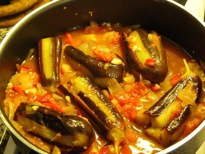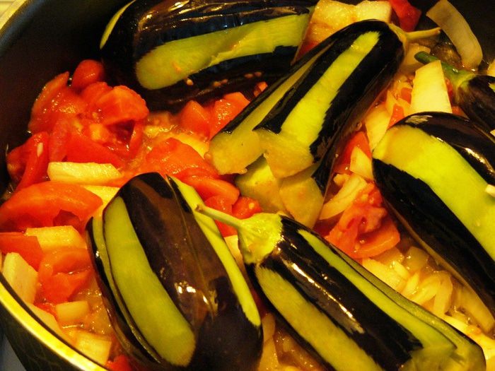Тушить под крышкой до мягкости баклажанов около 15 минут. Опытные хозяйки могут догадаться, что кислота плюс сахар дают вкус, похожий на маринованные салаты с уксусом. Но это интересно. Лук за счет кислоты, остается хрустящим и маринованным. И аромат невероятный! Прошу пробовать!