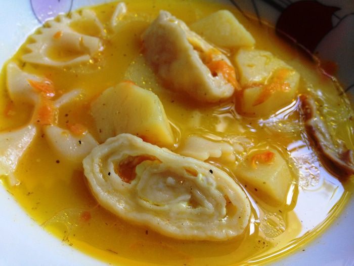 Также я не вынимаю курицу из готового бульона (разве что, если она мне нужна для других целей) и продолжаю томить ее на протяжении всего процесса варки супа. Знатоки, наверное, затопчут меня тапками, но мне так нравится - тогда курочку можно есть чуть ли не вместе с костями.