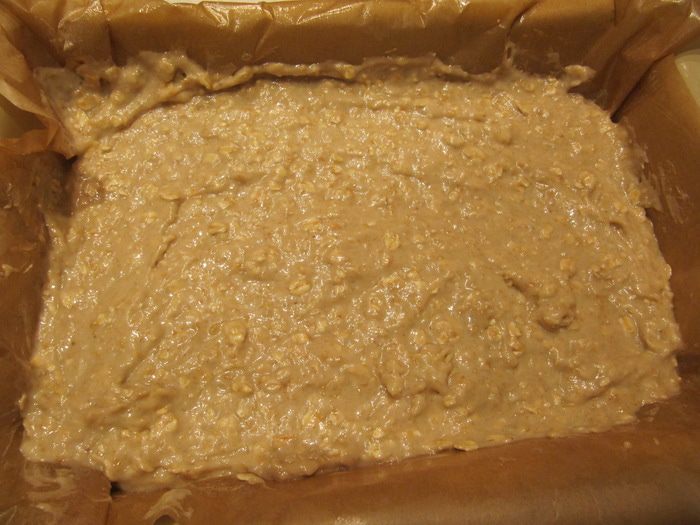 Форму для выпечки застелить пергаментом. Вылить тесто в форму и отправить в предварительно разогретую до 170-180°C духовку на 25-30 минут.