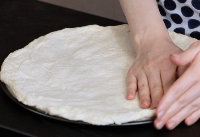 Достать тесто, раскатать до нужного размера, накрыть полотенцем и оставить на 10 минут.