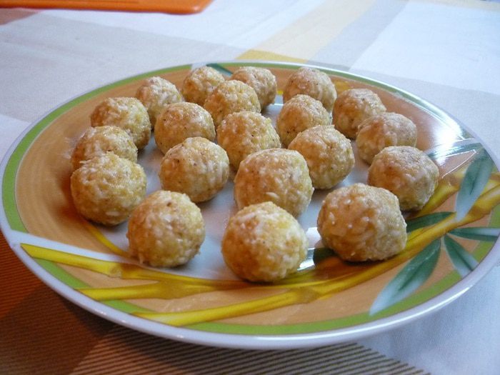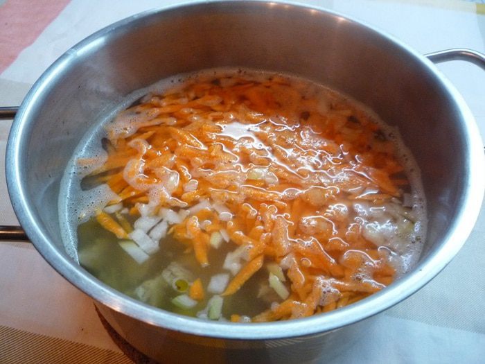 Сыр натереть на мелкой терке (я взяла кусочек твердого сыра и половинку плавленного сырка), добавить яйцо, панировочные сухари, посолить по вкусу. В зависимости от того, какие сухарики вы будете использовать для сырных шариков — ржаные или из белого хлеба, будет изменяться и привкус супа.