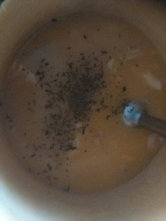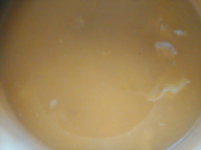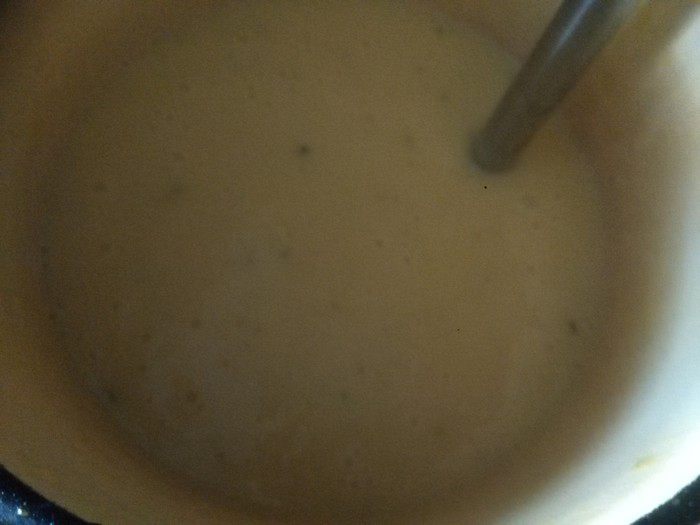 Добавляем горячее молоко и еще раз делаем пюре. Ставим на огонь и доводим до кипения и выключаем.