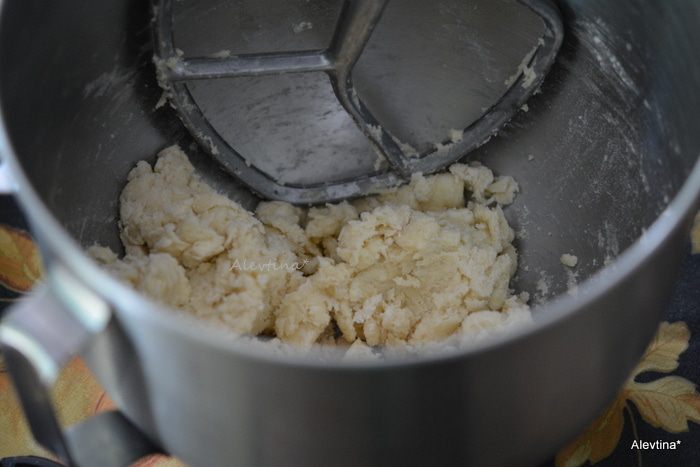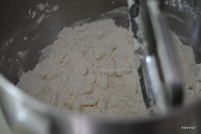Смешать муку, соль и сахар. Добавить порезанное тонкими кусочками холодное сливочное масло, перемешать в кухонном комбайне.