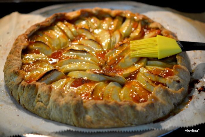 Готовую галету достанем из духовки. Дадим остыть. смажем абрикосовым джемом.