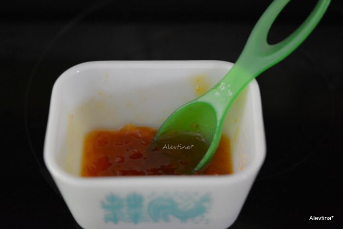 Смешать абрикосовый джем с 1 ст. л. воды.