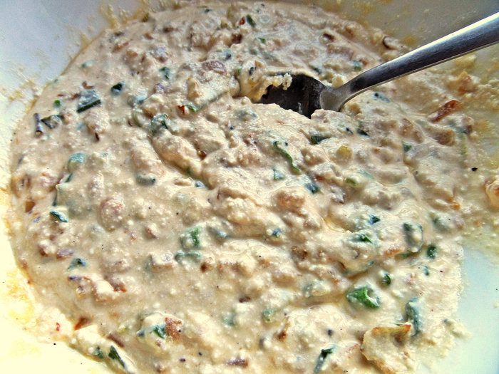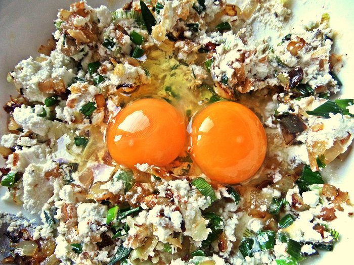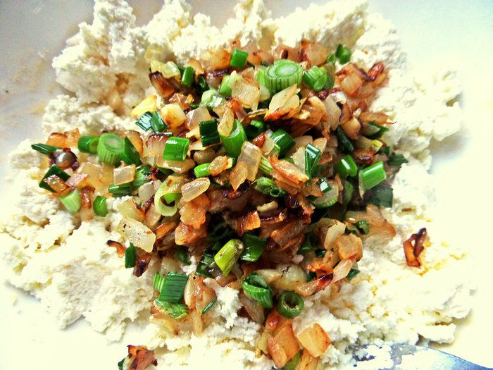 Переложить лук в творог.