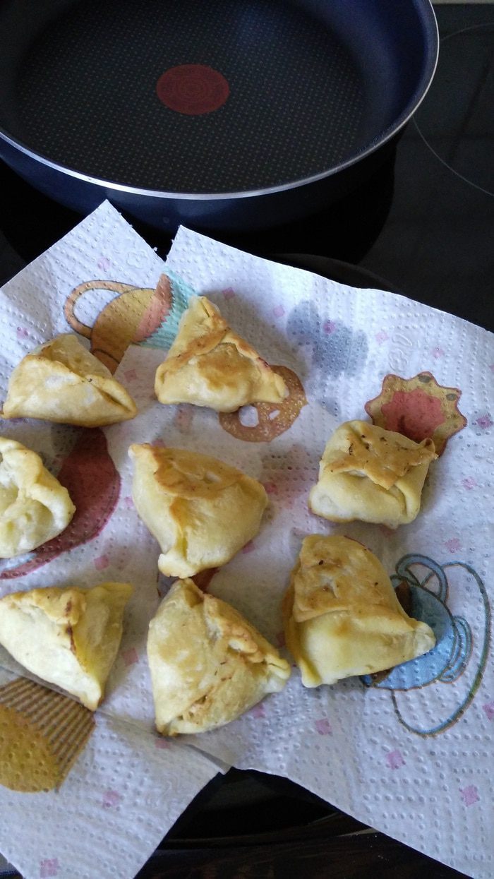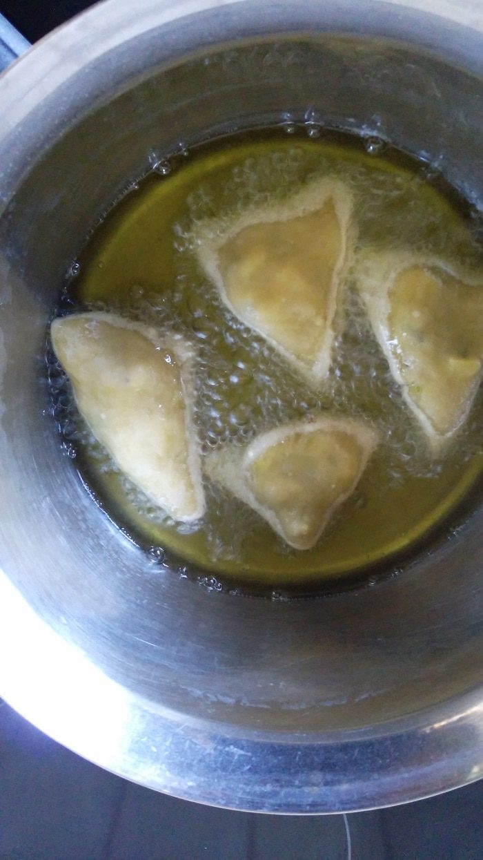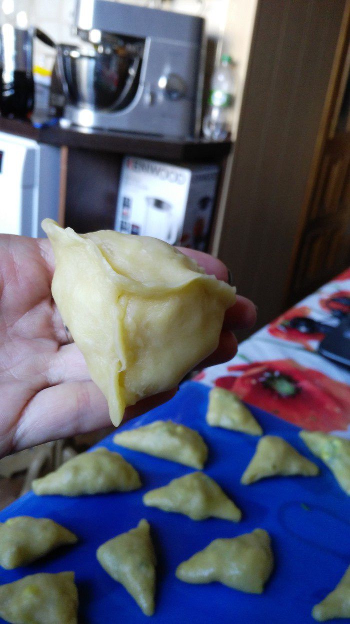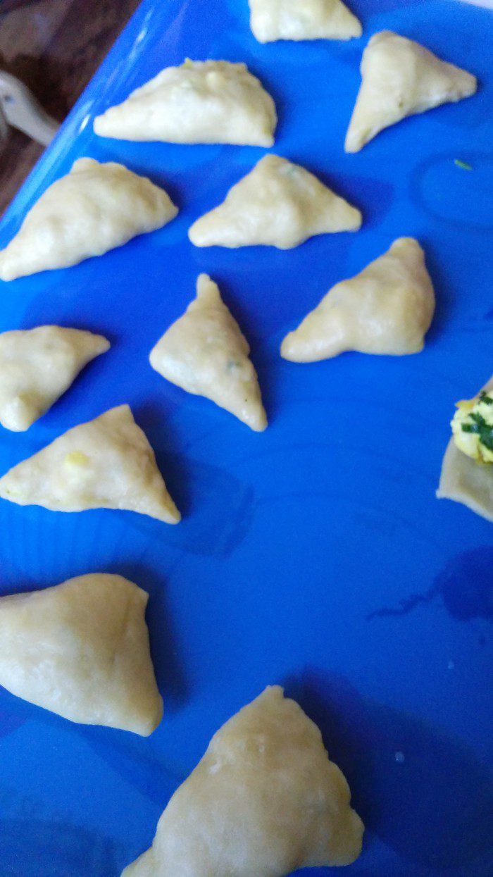 Слепить треугольные пирожки. Мне захотелось сделать именно малюсенькие, получилось 16 штучек.