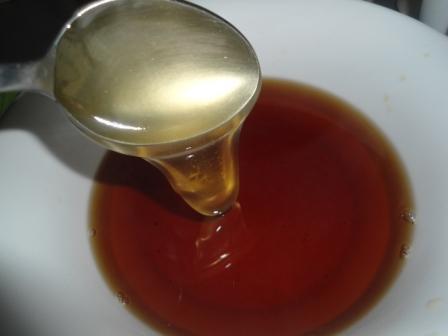 Добавляем мед, размешиваем. Теперь выливаем в чай сок и цедру апельсина.