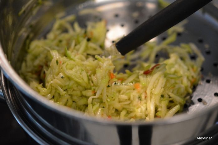 Разогреть духовку до 210 гр. Натереть цукини так, чтобы было 3/4 мерного стакана. Выложить протертый цукини в дуршлаг, посолить 1/4 ч.л соли и перемешать. Дать постоять 10 мин. Промыть под водой. Убрать лишнюю жидкость.