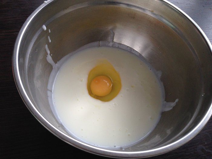 В отдельной миске взбить кефир с яйцом.