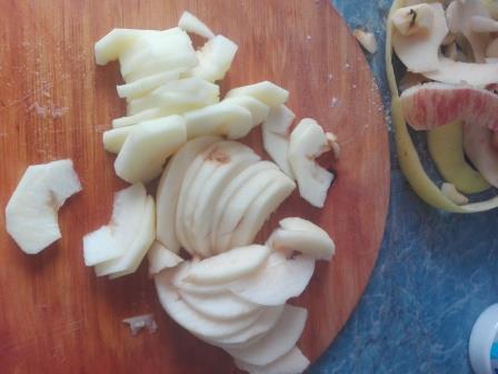 Очищаем яблоки от кожуры и семечек, нарезаем дольками.