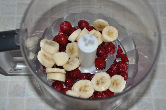 Сладость банана дополняется кисло-сладким вкусом вишни. В мякоти вишни содержится много полезных веществ: органические кислоты, минеральные вещества и микроэлементы (много меди, железо, калий, кальций, фосфор, магний), пектиновые вещества, ферменты, сахара, дубильные и красящие вещества, витамины А, С и РР, фолиевая кислота.