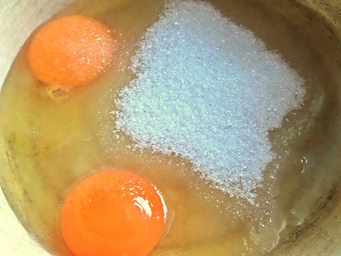 Смешиваем в миске яйца с сахаром и ванилью.