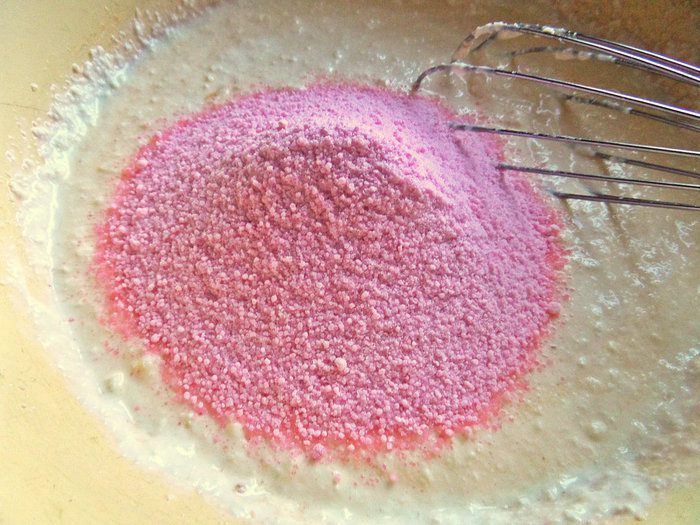 Вместо муки или манки взяла концентрат клюквенного киселя. В нём есть сахар, поэтому в общем составе у меня так мало сахара.