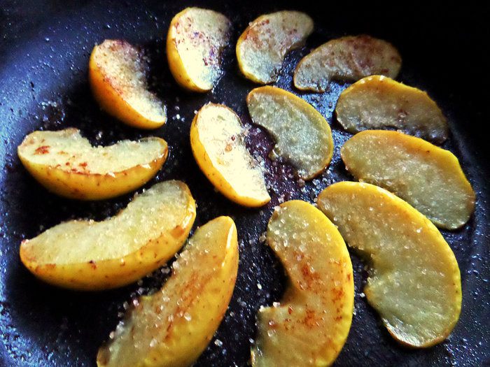 Обжарим с двух сторон, присыпав сахаром.