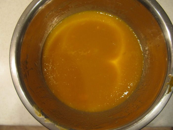 Сливочное масло растопить. Все ингредиенты соединить, размешав вилкой, и поставить в холодильник, пока занимаетесь тестом.