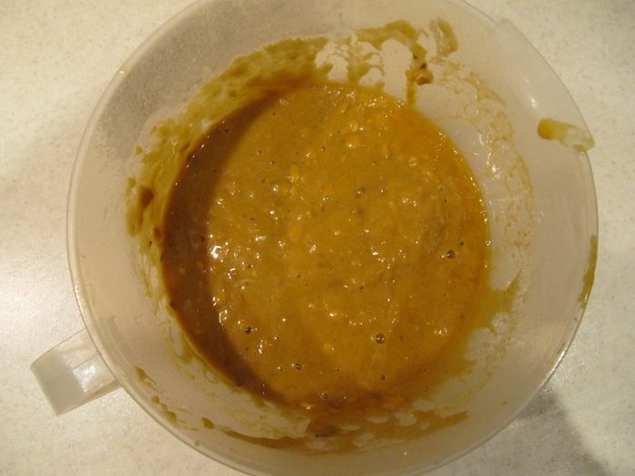 Не стремитесь перемешивать до однородности. Перемешивать нужно быстро, ничего страшного, если останутся небольшие комочки муки.