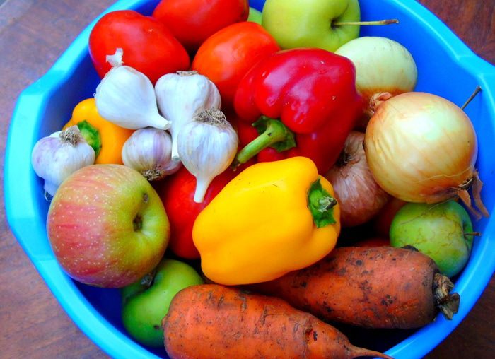 Взвешиваем и подготавливаем все овощи и яблоки.