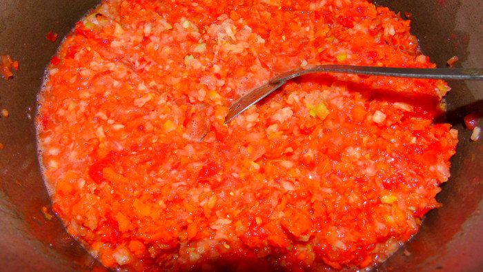 Выход - 12 банок 0,5 л Перец чили регулируйте по своему вкусу, по рецепту 3-4 шт, я кладу 2 шт., у меня любят не очень острую)))