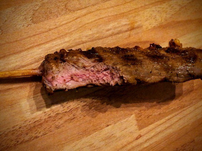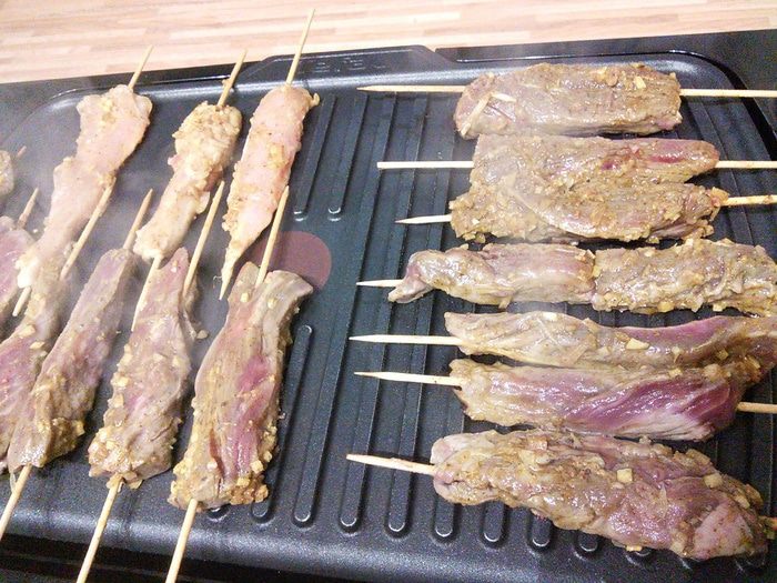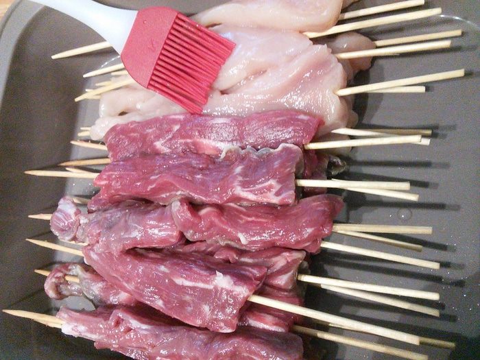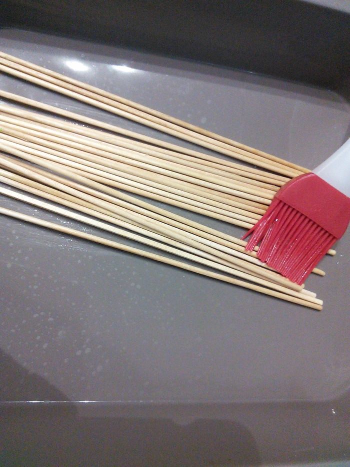 Деревянные шпажки нужно смазать маслом, так будет мясо легче сниматься.