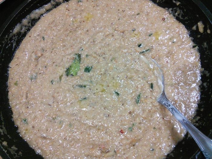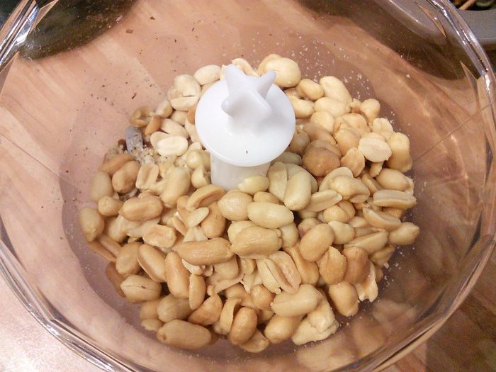 Арахис смолоть в крошку.