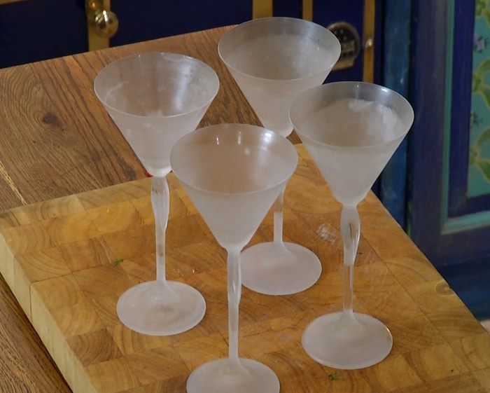 Бокалы для коктейля поместить в морозильник.
