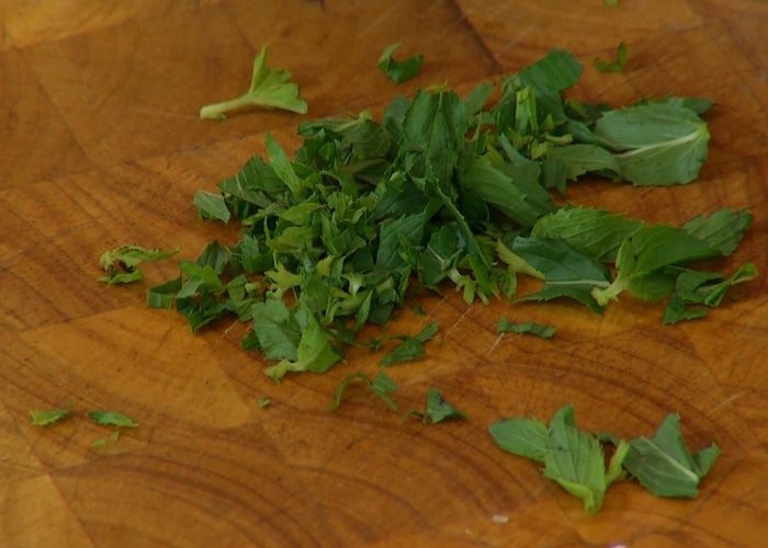 Листья мяты мелко порубить.