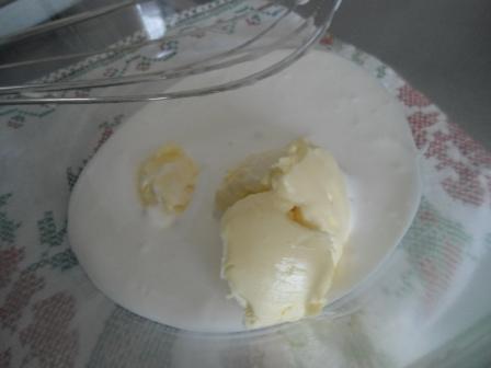 Добавляем размягченное сливочное масло(можно заменить маргарином). Еще немного взбиваем,несколько секунд.