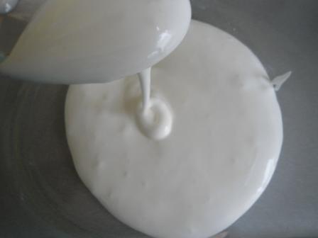 Взбиваем яичный белок с сахаром (или пудрой) и щепоткой соли до мягких пиков.