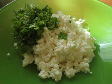 2. Творог растереть с солью и порезанной петрушкой.
