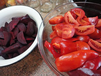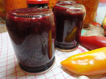 В конце варки добавить перец и кориандр, влить уксус, перемешать. Разлить по стерилизованным, прогретым банкам и закатать крышками.
