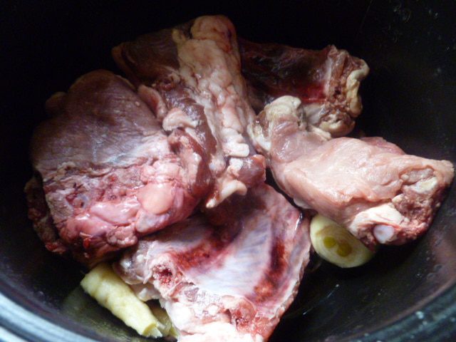 Мясной бульон должен покрывать мясо.