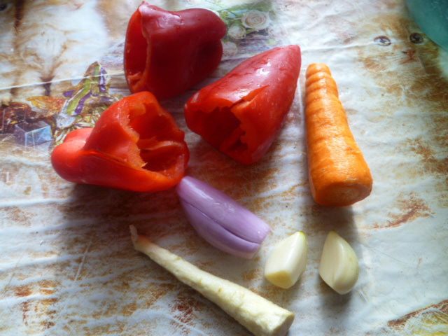 Пастернак, морковь нарезать на кружочки. Чеснок нарезать на дольки.